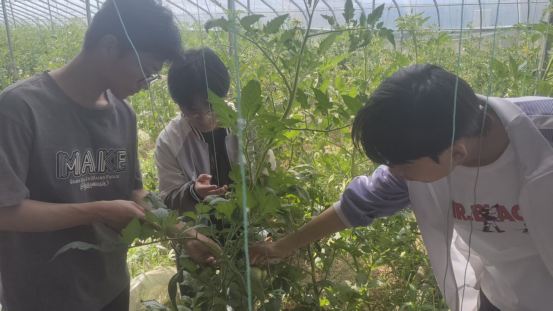 午后,实训阵地转移至蔬菜大棚。在这里,同学们主攻番茄等作物的整枝技术,认真学习单干整枝、抹杈吊蔓的实操要领。何莉老师穿梭在田垄间,耐心纠正同学们的操作手法。大家俯身劳作,将课堂上学到的理论知识,转化为实实在在的田间技能,大棚里回荡着求知探索的热情。