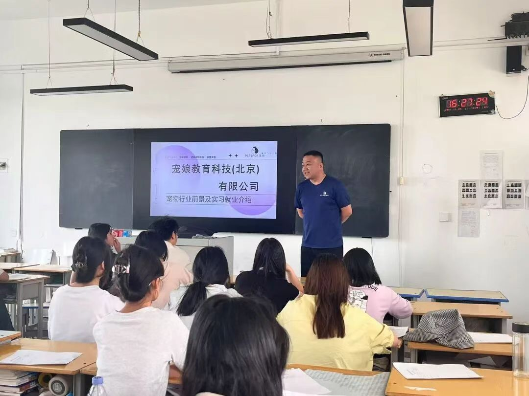 5 月 27 日,宠娘教育科技有限公司带着对宠物行业发展的深刻洞察以及对人才的热切需求走进农牧工程学院,开展了一场别开生面的企业宣讲活动。此次宣讲旨在通过全方位的政策宣讲、深入的企业推介以及精准的岗位对接,为学院与企业之间搭建起一座高效的人才供需匹配桥梁,助力青年学子开启精彩的职业征程,实现他们的职业理想。