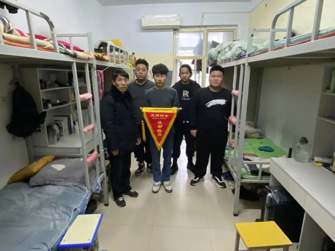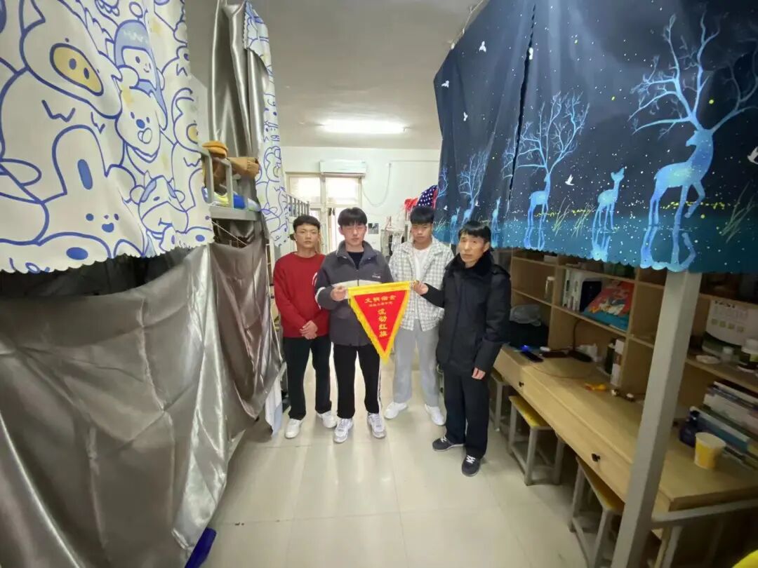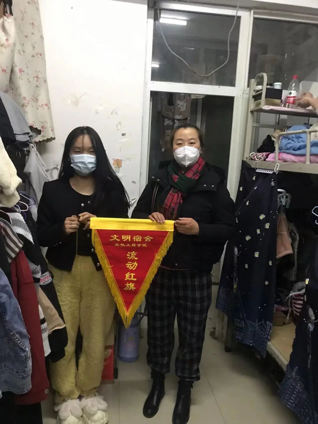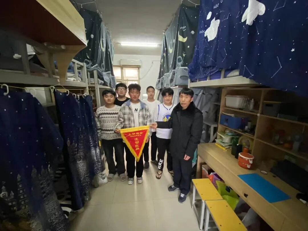 大学生活中,每一个寝室都是一个小小的家庭,每一个成员都是这个家庭的组成元素。近期根据平时卫生安全检查评比,选出了十个文明寝室,分别为:8646、8656、8666、8209、8211、8212、7140、7144、7667、7685。她们积极响应学校的号召,凭借共同的努力,保持良好的生活习惯,营造良好的学习和生活环境,获得本次“文明寝室”的称号。获文明寝室称号的宿舍成员,每个人都有很强的责任心,平时认真打扫寝室卫生,保持宿舍安全稳定。2月28号由王院长和王盈盈老师对这十个宿舍颁发了流动红旗并合照留念。