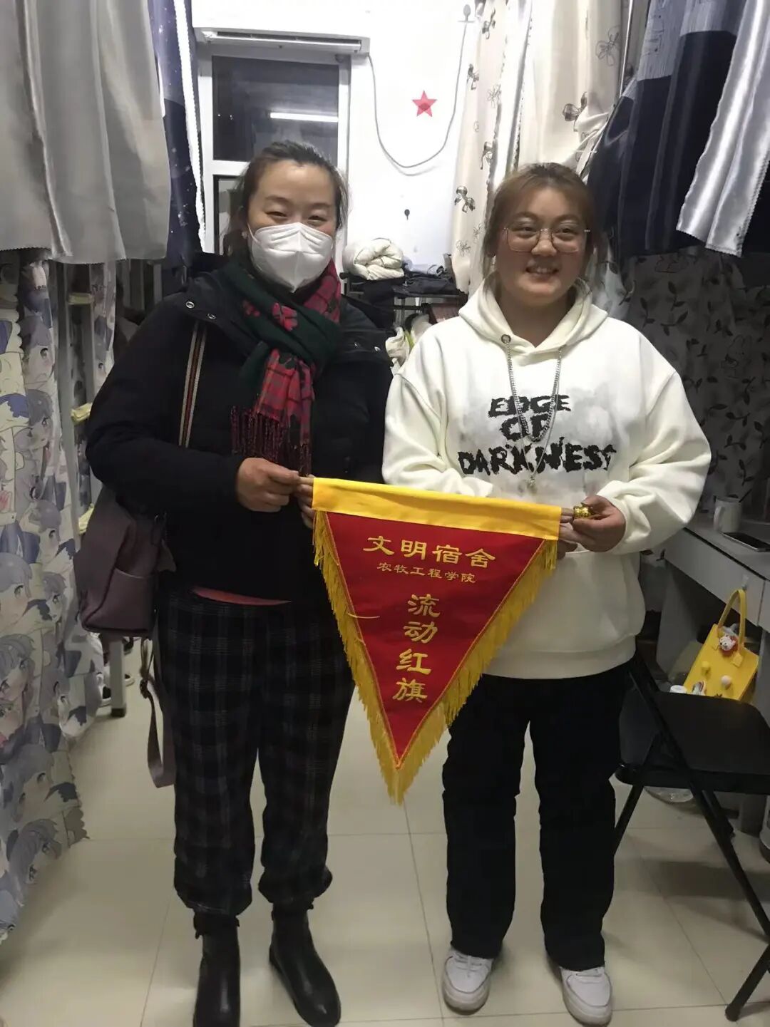 为细化落实我校宿舍管理制度,积极打造良好宿舍环境,农牧工程学院定期组织开展文明宿舍评选活动,对平时宿舍卫生安全和谐的文明寝室通过颁发流动红旗表扬鼓励,从而培养了学生良好的行为习惯和团结协作的精神。