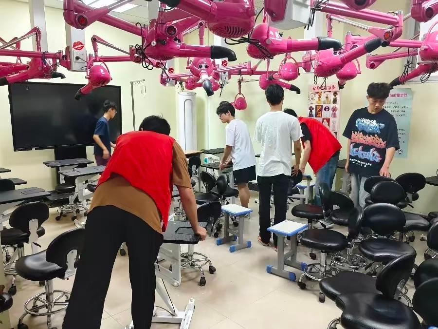到达实训室后,大家迅速按照预先安排明确分工,有序展开全面细致的清洁工作。一部分同学专注于擦拭桌椅、门窗,整理器械;一部分同学负责清扫地面,不放过任何一片垃圾;还有一部分同学则着重清理角落积藏的灰尘。大家秉持不怕脏、不怕累的精神,个个干劲十足。经过数小时的齐心协力,原本的实训室旧貌换新颜,营造出一个整洁、舒适的环境。