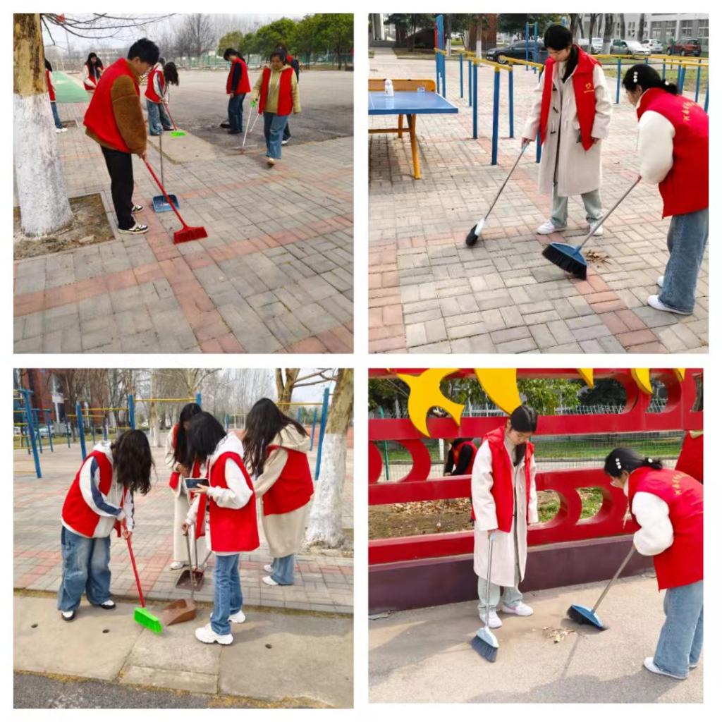 活动伊始,志愿者们开展了校园及周边环境的清洁行动。他们手持扫帚、垃圾袋等工具,认真清理着每一个角落的垃圾和杂物。他们全心全意为美化校园出力,用实际行动诠释着雷锋精神,带动更多同学爱护校园环境,让雷锋精神在校园生根发芽。