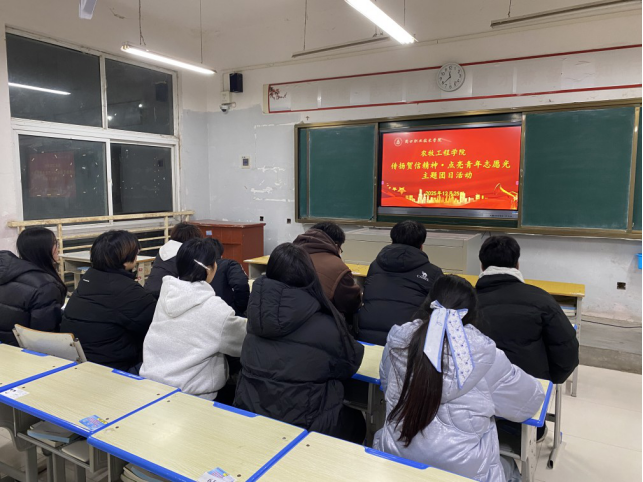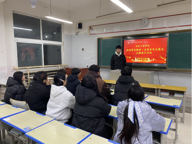 为深入学习领会学习贺信精神,引导广大青年团员深刻认识志愿服务的社会价值与时代使命,12月24日,农牧工程学院组织团支部在4213教室开展“传扬贺信精神,点亮青年志愿光”主题团日活动。